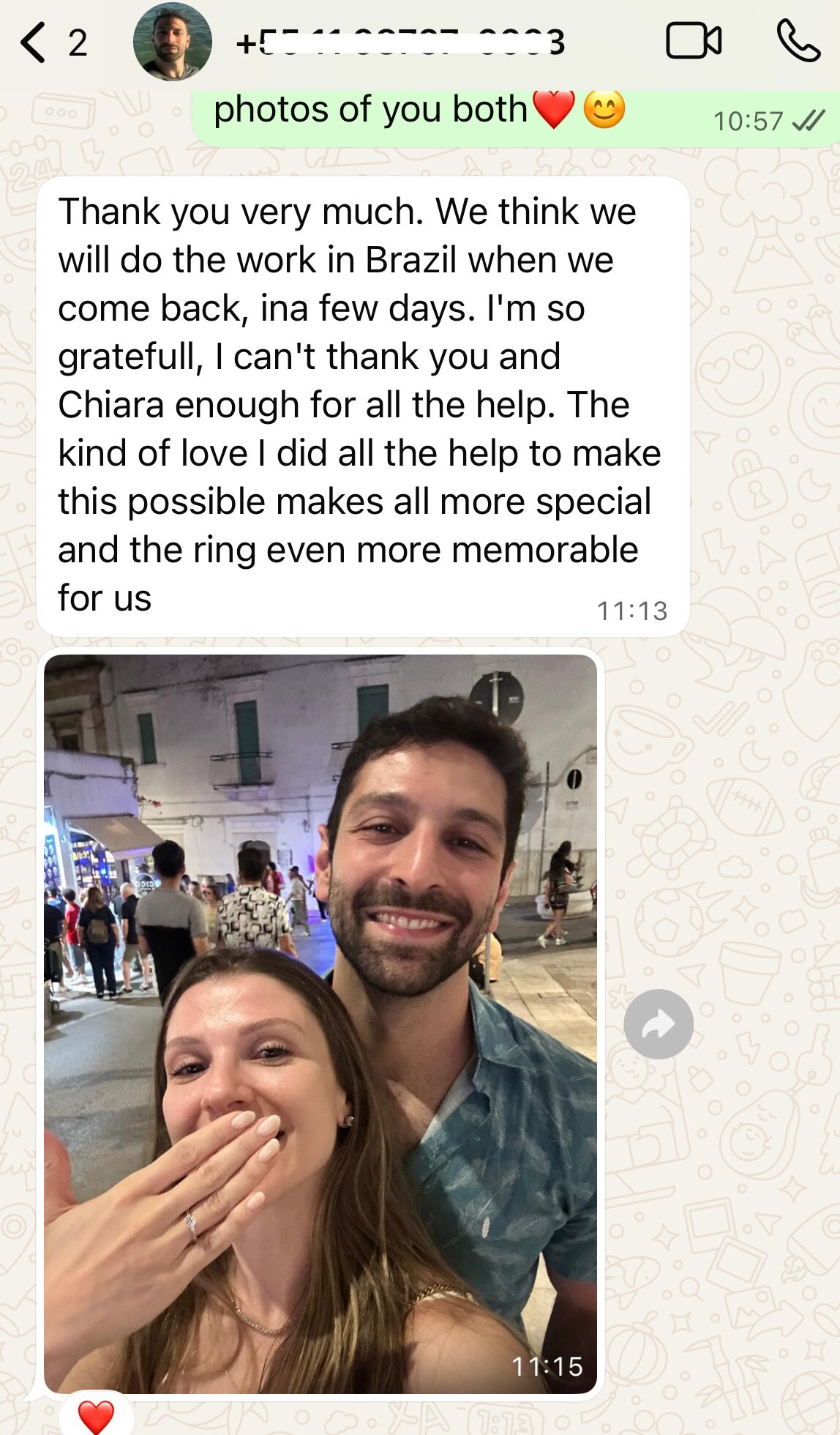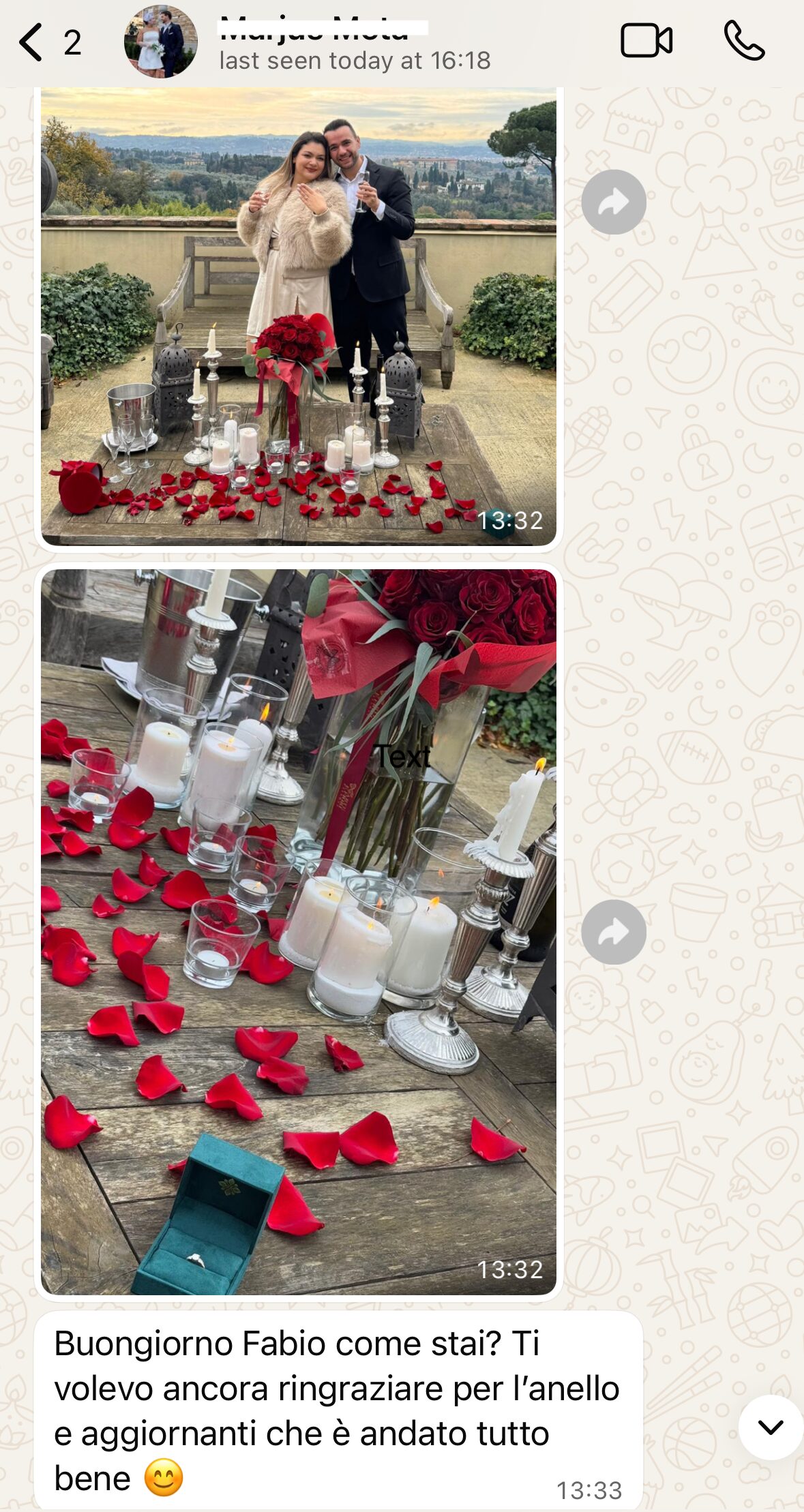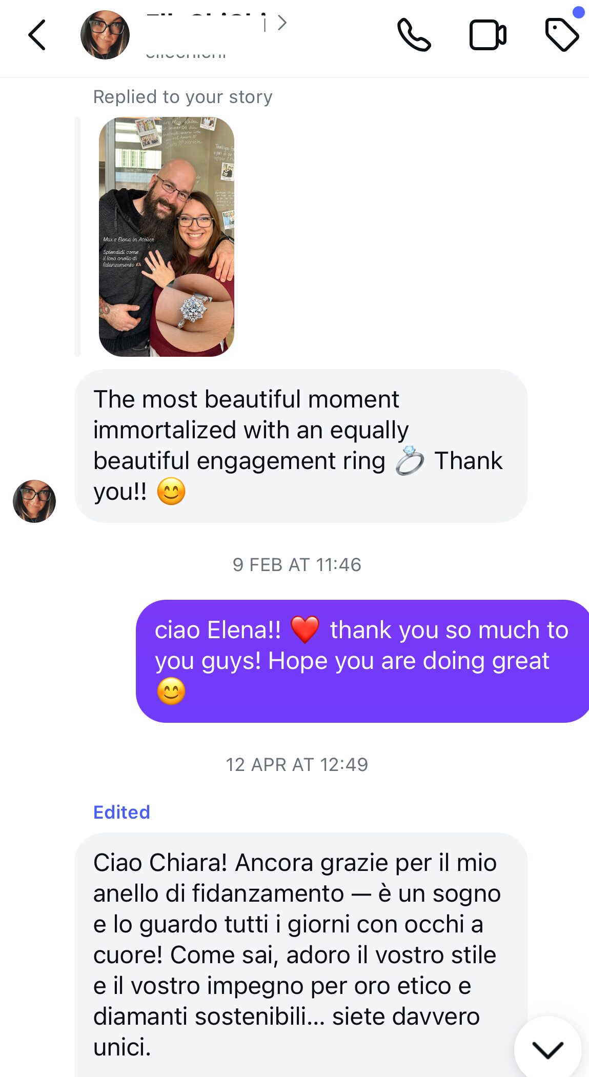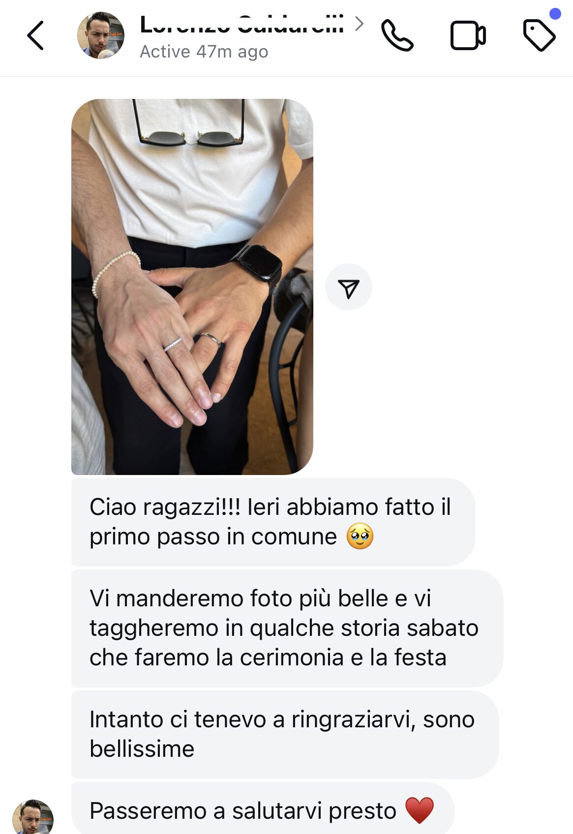 Naile Ciccone2025-09-17Quando si cerca l'anello di fidanzamento perfetto, si cerca qualcosa di più di un semplice gioiello: si cerca un'emozione, una storia. Ed è esattamente quello che abbiamo trovato in Fàbera. Io e il mio ragazzo ci siamo innamorati della loro filosofia e, dopo aver visto il loro sito, abbiamo capito subito che erano le persone giuste per noi. Sin dal primo contatto, la professionalità e la passione di Chiara e Fabio sono state evidenti. Sono riusciti a rendere un momento così importante un'esperienza serena e piacevole. Il processo online è stato semplicissimo e intuitivo, e la loro assistenza costante ci ha fatto sentire sempre supportati. L'anello è arrivato in tempi rapidi, con una spedizione perfetta, ed è stato ancora più bello di quanto potessimo immaginare. Consigliamo Fàbera a chiunque voglia vivere un'esperienza d'acquisto autentica e indimenticabile. Grazie, ragazzi, per aver reso questo momento così speciale e per aver creato l'anello dei nostri sogni!Brandon VanderBeek2025-09-16Chiara and Fabio at Fàbera provide excellent service and beautiful rings! They helped me create a custom engagement ring and I could not be happier with the result.Gonzalo Saravia Vitolo2025-09-13The whole experience has been amazing! The dedication of Chiara and Fabio in every step of the process makes everything feel magical.Beatrice Erriu2025-07-02Fabio e Chiara ci hanno aiutato a realizzare delle fedi etiche per il nostro matrimonio. Volevamo che il simbolo della nostra unione fosse di grande valore anche morale, oltre che materiale, e premiare una piccola realtà artigianale sensibile alle tematiche sociali ci è sembrata la scelta più bella da fare. Siamo stati coinvolti in ogni fase della realizzazione degli anelli ed è stato un piacere andare fisicamente a Firenze per conoscerli e ritirarli. Che dire, grazie!Matteo Scardigli2025-06-20Competenza, professionalità, gentilezza e tanta cura dall’inizio alla fine. Ottima esperienza!giovanni Bruzzaniti2025-06-20Mi sono rivolto a Fabio e Chiara per realizzare l’anello di fidanzamento e non potrei essere più soddisfatto. Fabio è stato estremamente disponibile, è venuto incontro ad ogni mia esigenza, con pazienza ed estrema gentilezza e mi ha guidato con professionalità nella scelta delle soluzioni migliori. Il risultato finale è stato semplicemente perfetto, curato nei minimi dettagli e realizzato con grande maestria. Un servizio eccellente, attento e su misura. Consiglio vivamente a chiunque cerchi qualità, competenza e un tocco di umanità in più. Grazie ancora di cuore!Giacomo Sbaragli2025-06-17Consigliatissmo! Fabio e Chiara hanno a cuore prima di tutto il rapporto con chi hanno davanti come persona (non solo come cliente) e lo dimostrano con la gentilezza e la disponibilità. Ovviamente questo si riflette sui loro manufatti realizzati in maniera unica ed etica, dimostrando che è possibile scegliere contemporaneamente sia la bellezza di quanto realizzato in un gioiello che il valore sociale compreso nel materiale utilizzato. Ce n'era bisogno. Grazie ancora!Valutazione complessiva Google 5.0 su 5, in base a 108 recensioniVuoi scrivere con noi la tua storia?Iniziamo con il gioiello dei tuoi sogniFree shipping | Lifetime warranty | No-obligation pre-purchase consultation Ignora